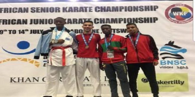 البطل أوسامة الفحصي من الجمعية الجمركية يمنح ميدالية ذهبية للمغرب في بطولة افريقيا للكراطي .