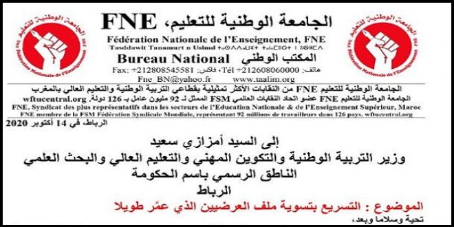 الجامعة الوطنية للتعليم FNE التوجه الديمقراطي تراسل الوزير أمزازي