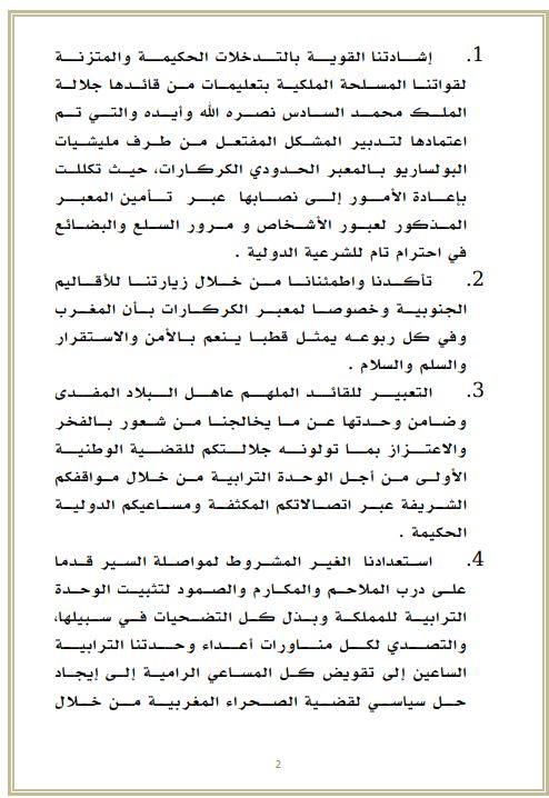 في سياق متصل، تأتي هذه الزيارة في سياق أجواء التعبئة الشعبية والإجماع الوطني التي عبرت عنها كافة القوى السياسية والمدنية داخل وخارج الوطن عقب المبادرة المباركة التي اتخذتها بلادنا بفتح معبر الكَركَرات وتطهيره من عصابة البوليساريو.