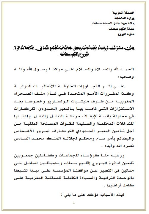 من الكركرات ، رؤساء الجماعات المحلية ببني مسكين يثمنون القررات الحكيمة لجلالة الملك محمد السادس