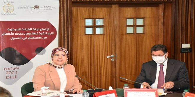 ترأست وزيرة التضامن والتنمية الاجتماعية والمساواة والأسرة، السيدة جميلة المصلي، والوكيل العام للملك رئيس النيابة العامة، السيد محمد عبد النباوي، صباح اليوم الاثنين (فاتح فبراير 2021) بالرباط، اجتماع لجنة القيادة المركزية لحماية الأطفال من الاستغلال في التسول، خصص لتقديم حصيلة فرق العمل الميداني بمدن الرباط وسلا ط وسلا وتمارة، كتجربة نموذجية، بعد مرور سنة على إعطاء الانطلاقة لخطة عمل حماية الأطفال من الاستغلال في التسوللتسول.