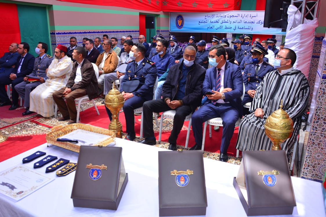 بعد ذلك تم عرض شريط حول توظيف وتكوين موظفي السجون وفي ختام الحفل تم الاحتفال بالموظفين المتميزين.