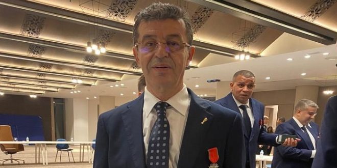 صاحب الجلالة يوشح الحاج عبد المالك أبرون رئيس البعثة المغربية في كأس العالم قطر 2022 بوسام العرش