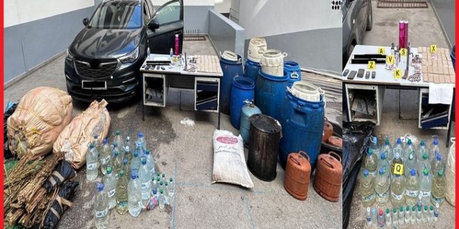 أما عملية التفتيش المنجزة بمنزل بالمنطقة القروية “أولاد حجاج”، تعود ملكتيه لشخص ثالث يشتبه في ارتباطه بهذا النشاط الإجرامي، فقد مكنت من تفكيك ورشة لإعداد مسكر ماء الحياة وحجز 600 لتر إضافي من هذه المادة المسكرة، فضلا عن حجز معدات وأواني تستعمل في عملية تقطيره.