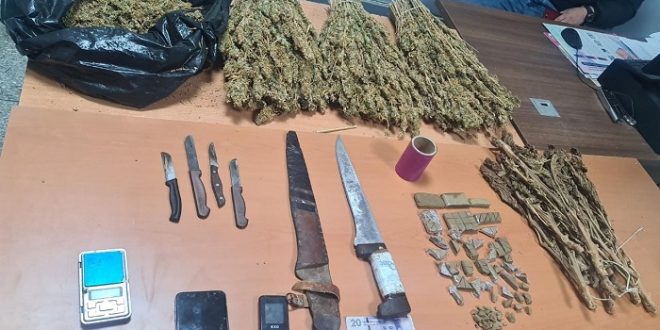 وقد تم توقيف المشتبه فيه في حالة تلبس خلال عملية أمنية جرى تفعيلها بمدينة ابن أحمد، قبل أن تمكن عملية التفتيش المنجزة في هذه القضية عن حجز 236 غرام من مخدر الشيرا و 2900 غرام من القنب الهندي و 630 غرام من التبغ المهرب، فضلا عن أسلحة بيضاء وسيارة ومبلغ مالي يشتبه في كونه من عائدات هذا النشاط الاجرامي.