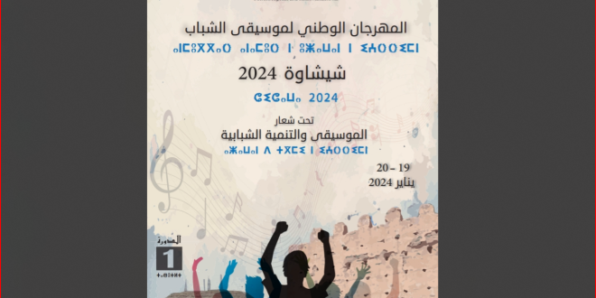 تنظم وزارة الشباب والثقافة والتواصل –قطاع الثقافة- بتعاون مع عمالة إقليم شيشاوة والمجلس الإقليمي والمجلس الجماعي الدورة الأولى للمهرجان الوطني لموسيقى الشباب تحت شعار “الموسيقى والتنمية الشبابية” وذلك يومي 19 و20 يناير 2024 بساحة الاحتفالات بمدينة شيشاوة.