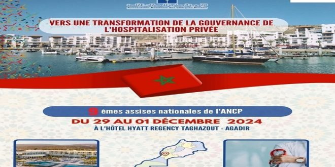 هذا وستنظم هذه الدورة من المناظرة الوطنية للصحة تحت شعار “نحو انتقال لحكامة الاستشفاء بالقطاع الخاص” بفندق حياة ريجنسي بأكادير. وسيشكل الحدث فرصة لمشاركة المهتمين بالشأن الصحي وضمنهم نساء ورجال الإعلام، قصد تغطية فعاليات هذه الدورة، التي ستكون مناسبة كذلك لتجديد انخراط الجمعية الوطنية للمصحات الخاصة في إنجاح الورش الملكي الرائد للحماية الاجتماعية، وضمنها الشق المتعلق بتعميم التغطية الصحية.