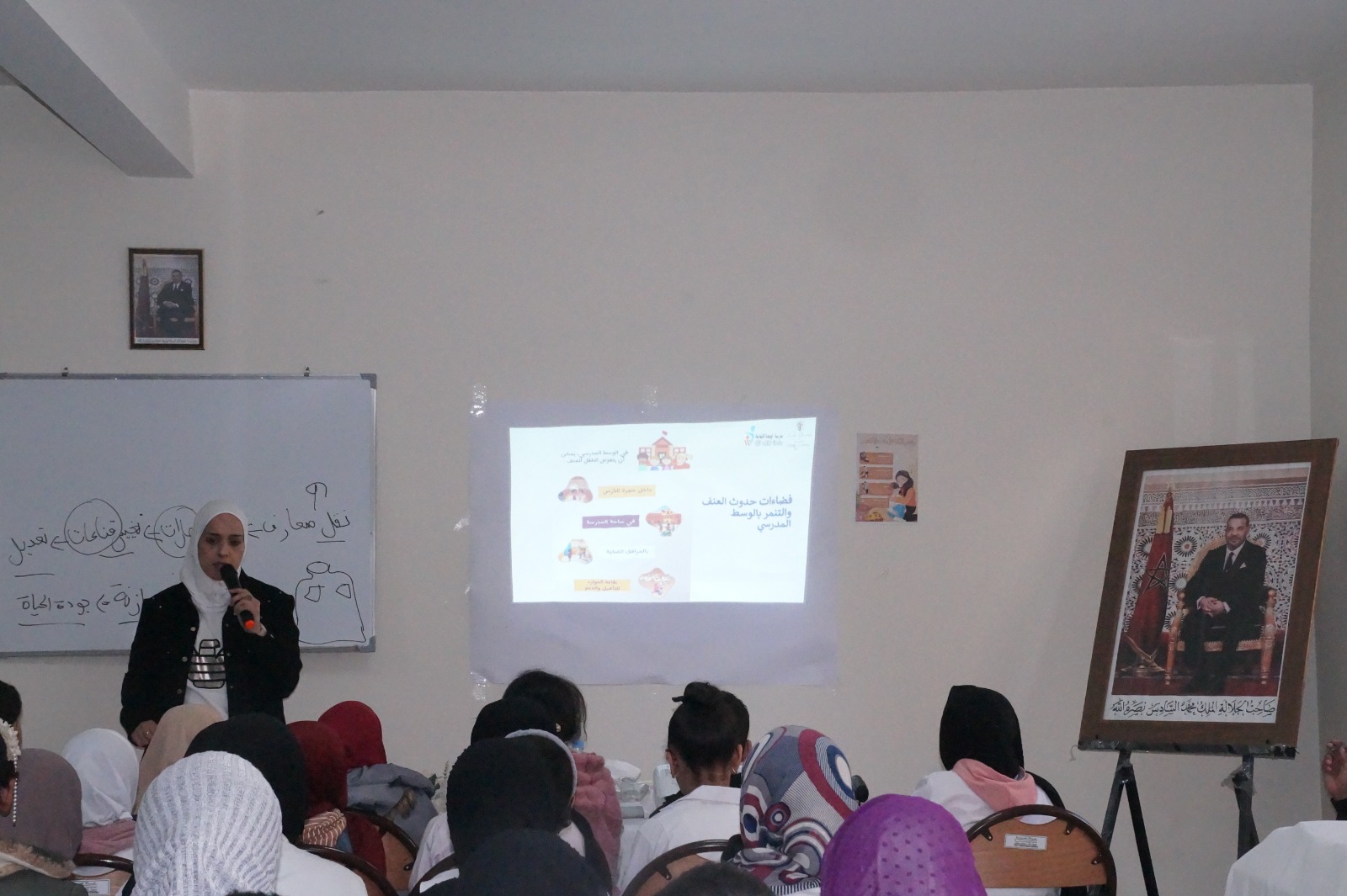 وأشارت المؤطرة في ورشتها إلى مخاطر العالم الافتراضي والاستعمال الغير الآمن للأنترنيت، وما يعرفه من ظواهر العنف والتحرش والابتزاز، وركزت على إكساب المتعلمين آليات الوقاية من العنف والتنمر الإلكتروني.