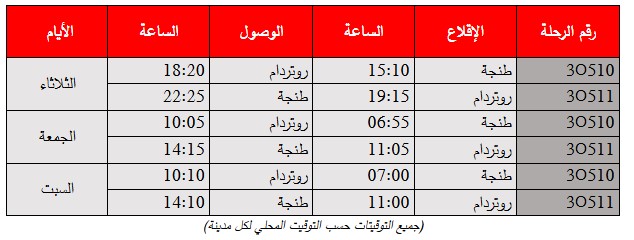 انطلقت الرحلة الافتتاحية اليوم من مطار ابن بطوطة الدولي بمدينة طنجة على الساعة الثالثة وعشر دقائق ، لتحط رحالها في مطار روتردام عند الساعة السادسة وعشرين دقيقة مساءً، مُعلنةً بذلك الإطلاق الرسمي لهذا الخط الجوي الجديد الذي يربط بين المدينتين.