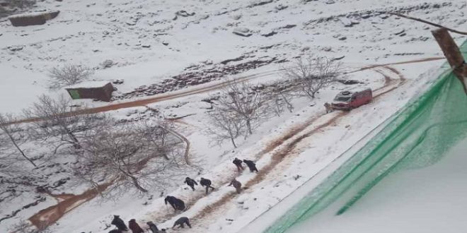 تضامن مواطنين ينقذ سيارة نقل حاصرتها الثلوج بطريق دمنات – أيت توتلين بإقليم أزيلال