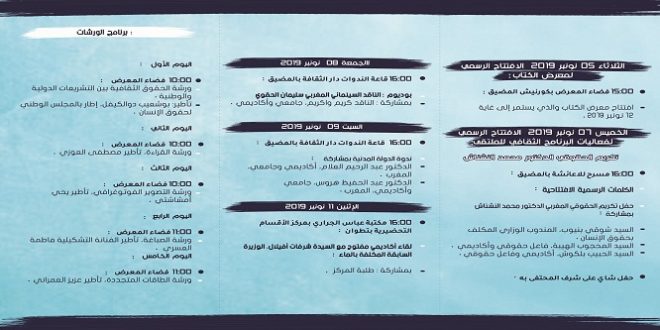 مواكبة للدينامية الثقافية والاجتماعية التي تعرفها مدينة المضيق، واعتبارا لما للثقافة من دور هام في تنمية المجتمع والرقي به، واستمرارا لتقليدها الثقافي السنوي المتمثل فيالاحتفاء بالقراءة والكتاب والمؤلفين، تنظم جمعية قدماء تلاميذ ثانوية الفقيه داود التأهيلية بالمضيق ما بين 05 و 12 نونبر 2019 فعاليات الدورة السابعةمن ملتقى المضيق للكتابوالمؤلف، هذا وسيعرف برنامج الملتقى في دورته الحالية تنظيم معرض هام للكتاب بمشاركة دور نشر مغربية وعربية ومؤسسات ثقافية وطنية وأجنبية، ويحتفي الملتقى هذه السنة بالمناضل الحقوقي الكبير الدكتور محمد النشناش أحد رواد التجربة المغربية في العدالة الانتقالية، بمشاركة كل من الحقوقي والأكاديمي الأستاذ المحجوب الهيبة، والحقوقي وعضو هيئة الإنصاف والمصالحة سابقا الأستاذ شوقي بنيوب، والأكاديمي الحقوقي الحبيب بلكوش.